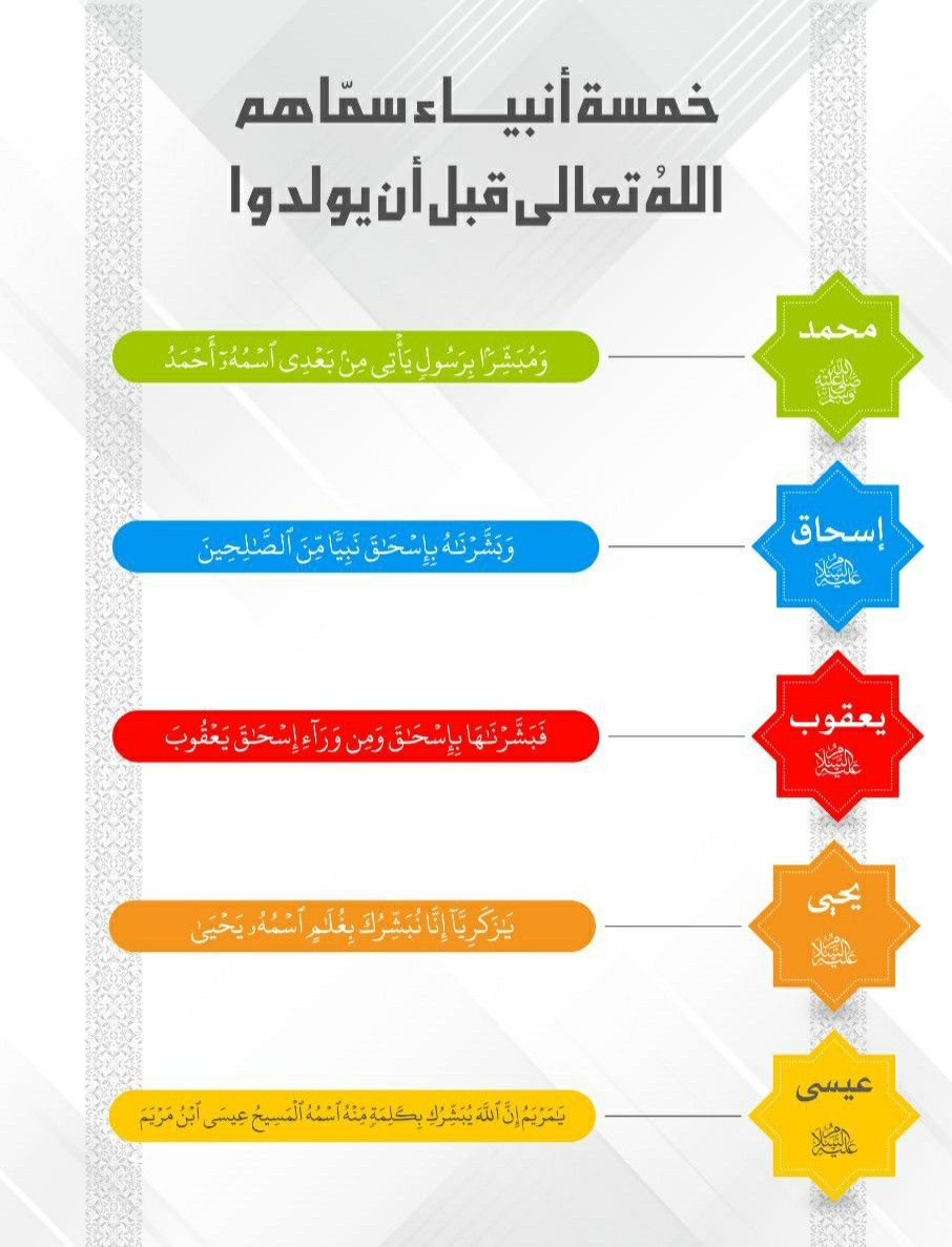 خمسة انبياء سمّاهم الله تعالى قبل أن يولدوا