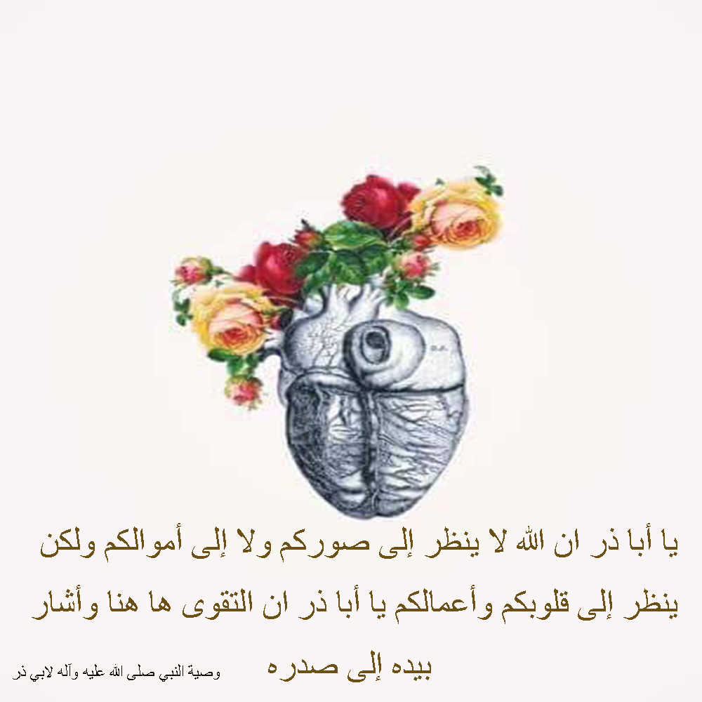يا أبا ذر إن الله تبارك وتعالى لا ينظر إلى صوركم ولا إلى أموالكم ، ولكن ينظر إلى قلوبكم وأعمالكم.
