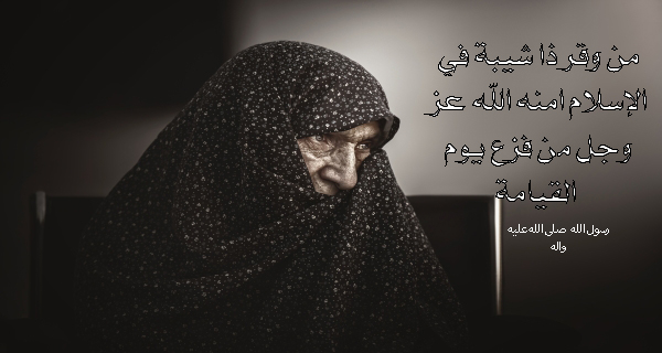 من وقر ذا شيبة في الإسلام امنه الله عز وجل من فزع يوم القيامة ..رسول الله صلى الله عليه واله