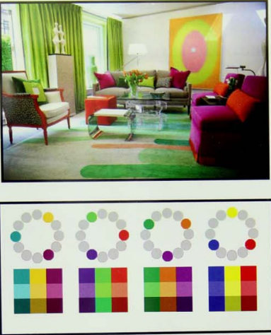 ويعتمد على اختار الألوان الثلاثة الرئيسة كما بالشكل الأحمر ، الأزرق ، الأصفر وكذلك الألوان الثنائية البرتقالي ، الأخضر ، والبنفسجي.