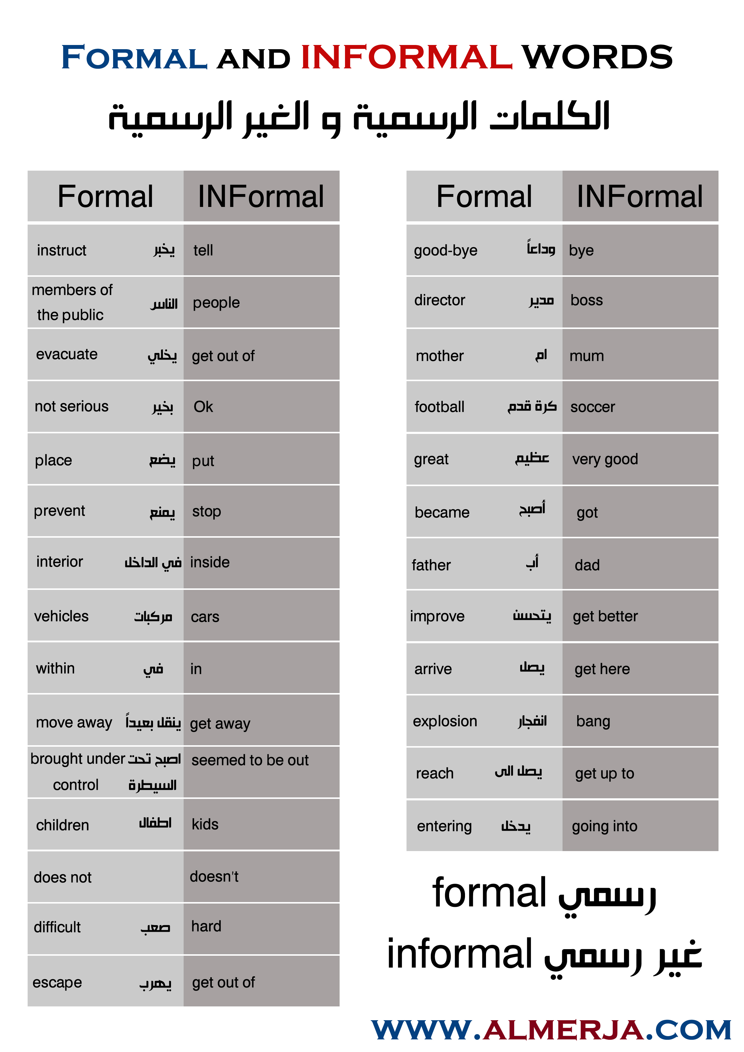 Formal and INFORMAL WORDS