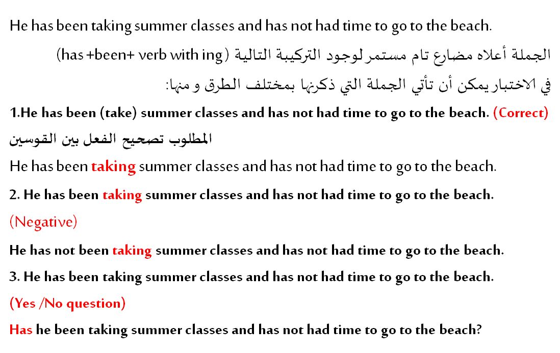 المضارع التام المستمر و بعض الطرق المستخدمة في تمييز حالاته و كيفية تنفيذ المطلب بين القوسين