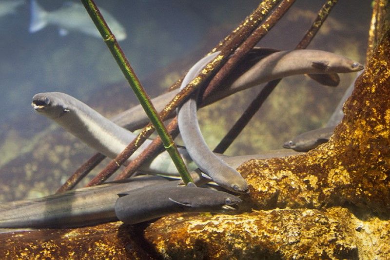 European eels are strong swimmers, but they have impressive climbing skills, too, allowing them to navigate obstacles such as dams in their upstream journeys. There are even reports of European eels leaving the water altogether and entering fields, where the species feasts on slugs and worms.