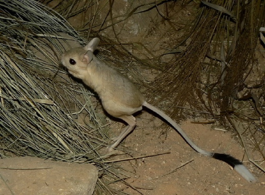 The different species of kangaroo rats and pocket mice look fairly similar, with silky gray-brown to yellow-brown fur, lighter colored bellies, and long tails with a tuft of hair at the end.