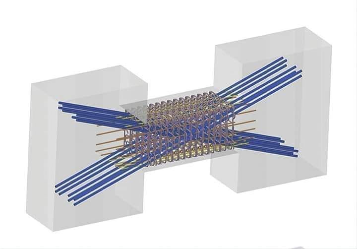 عندما يكون لديك جداران قص متوازيان، يتم ربطهما بكمرة عرضية كما في الشكل، ثم يتم تسليح الكمرة على شكل X وتسمى (coupling beam ).