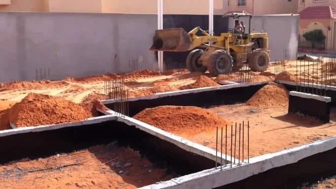 يجب التخلص من خلفات المبناء وازالت الاساسات والحفر حتى تصل للتربة الصالحة للبناء