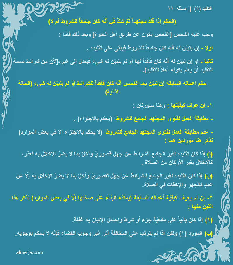 ثانيا - او إن تبيّن له أنّه كان فاقداً لها أو لم ‏يتبيّن له شيء فيعدل إلى غيره[لأن من شرائط صحة التقليد أن يعلم بكونه أهلاً للتقليد].