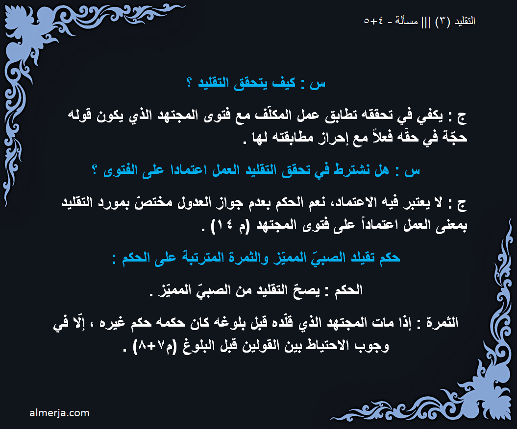 س : كيف يتحقق التقليد ؟