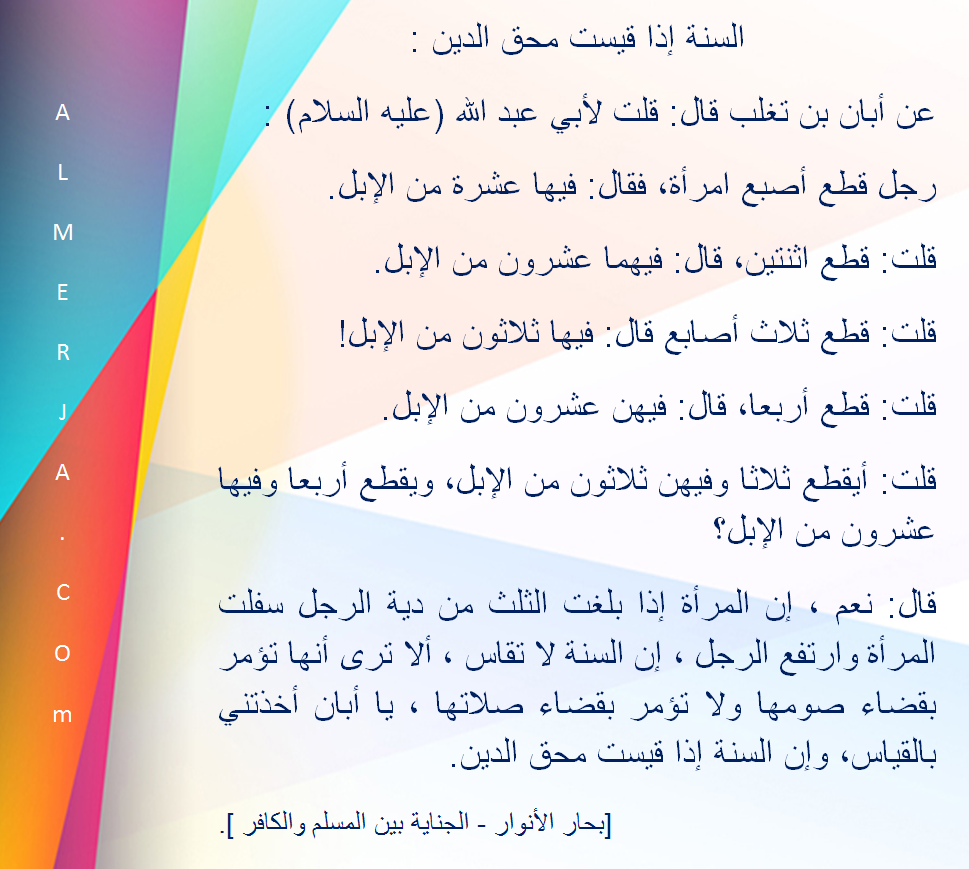 قال: نعم ، إن المرأة إذا بلغت الثلث من دية الرجل سفلت المرأة وارتفع الرجل ، إن السنة لا تقاس ، ألا ترى أنها تؤمر…