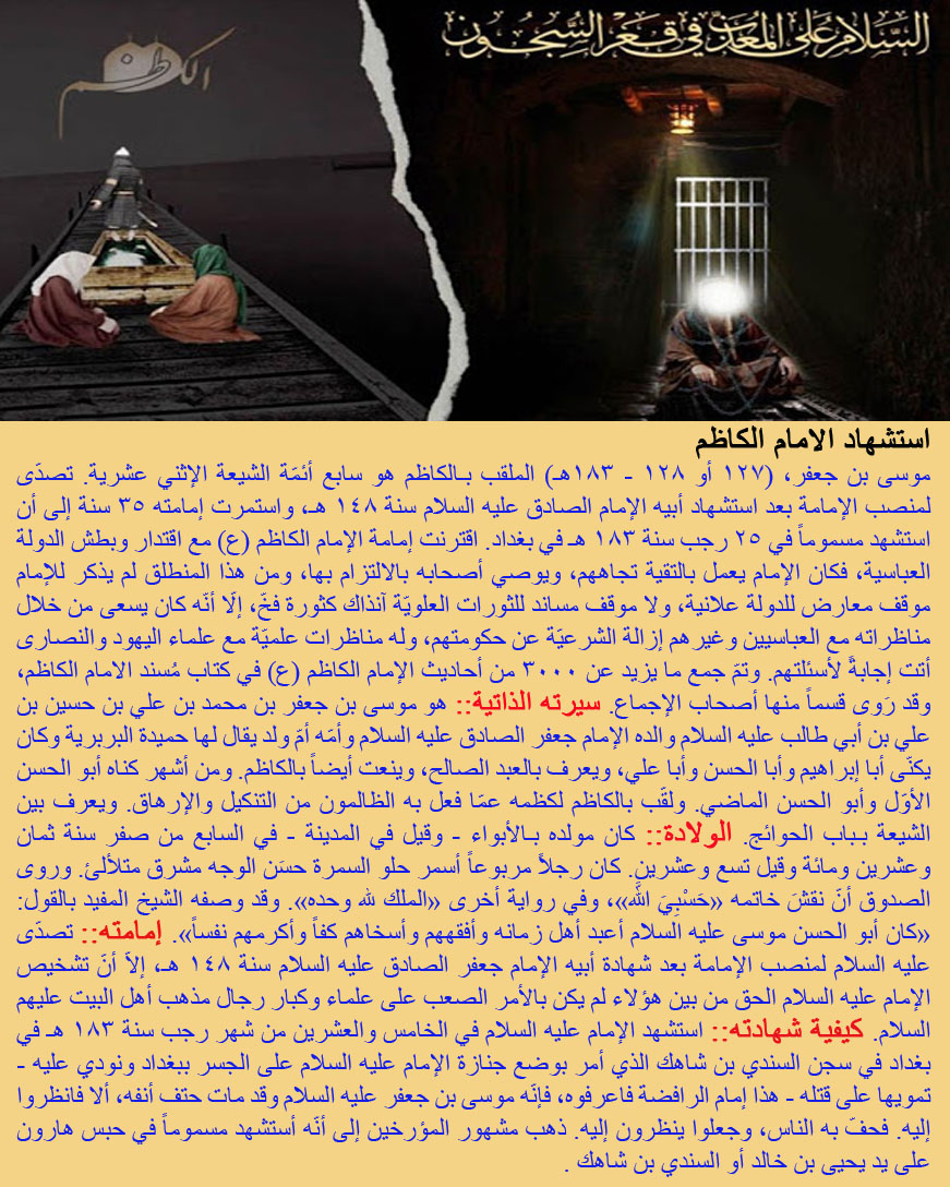 حدث في مثل هذا اليوم (25 رجب):: استشهادالامام الكاظم عليه السلام