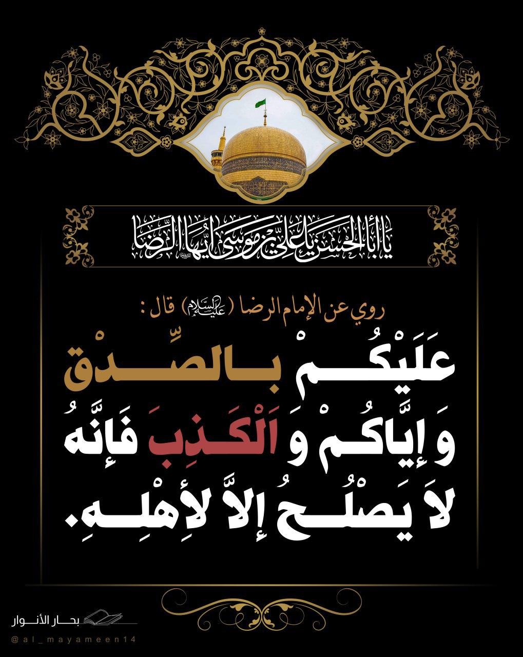 روي عن الامام الرضا (عليه السلام) قال : عليكم بالصدق وإياكم والكذب فإنه لا يصلح إلاّ لأهله .