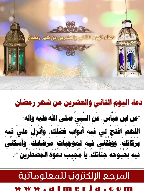 دعاء اليوم الثاني والعشرين من شهر رمضان /