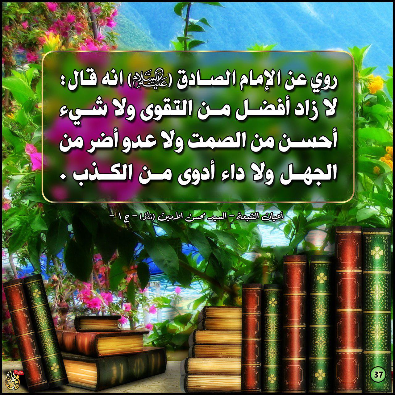روي عن الإمام الصادق (عليه السلام) إنه قال : لا زاد افضل من التقوى ولا شيء أحسن من الصمت ولا عدو أضر من الجهل ولا داء أدوى من الكذب .