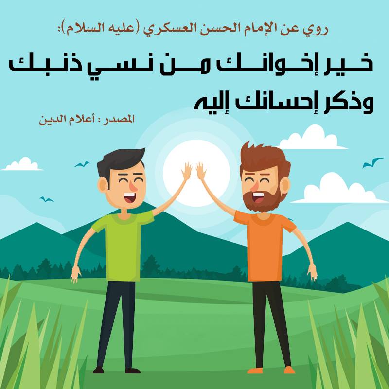 الإمام الحسن بن علي العسكري ( عليه السلام ) أنهُ قَالَ : خَيرُ إخوانِكَ مَن نَسِيَ ذَنبَكَ ، وذَكَرَ إحسانَكَ إلَيهِ .