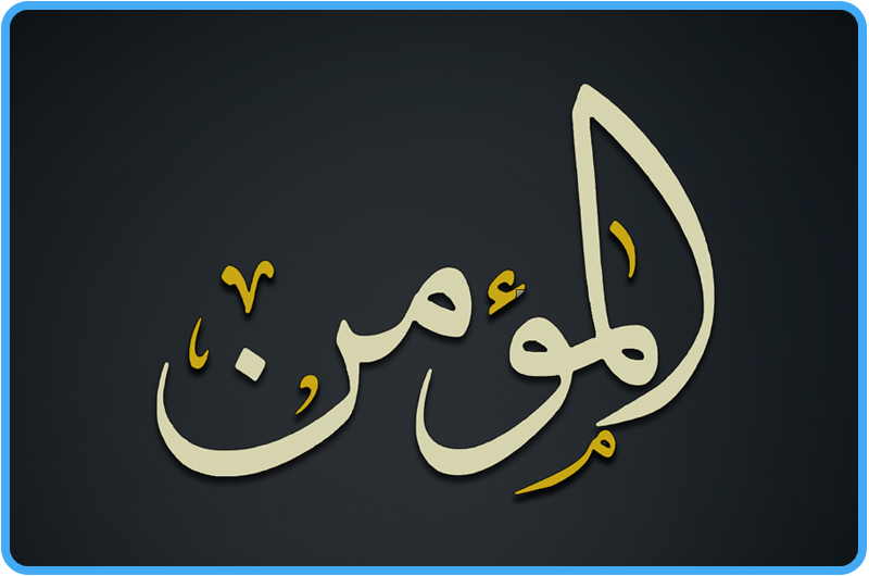 المُؤمِنُ: الذِي يَصدُقُ عِبَادَهُ وَعدَهُ، وَيَفِي لَهُم بِمَا ضَمِنَهُ لَهُم، وَيُؤمِنُ مِن عَذابِهِ مَن أَطَاعَهُ.