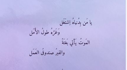 يا مَن بِدُنياهُ اِشتَغَل *** وَغَرَّهُ طولُ الأَمَل + المَوتُ يَأتي بَغتَةً *** والقبرُ صندوقُ العَمَل