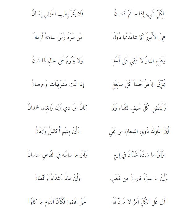 مِن قصيدة: (لكلّ شيء إذا ما تمّ نقصان) لأبي البقاء الرنديّ.
