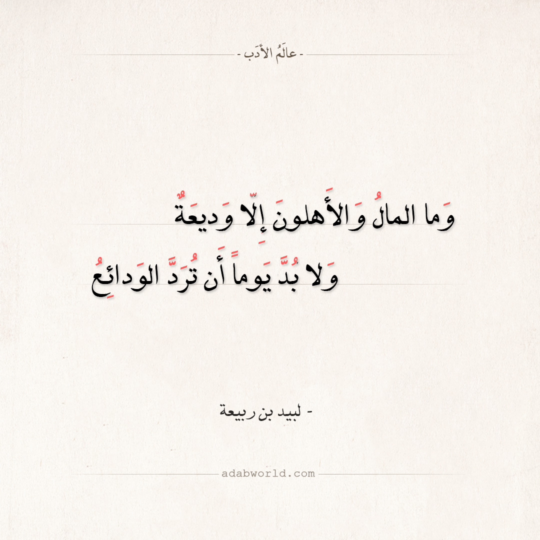وَما المالُ وَالأَهلون إِلّا وَديعَةٌ *** وَلا بُدَّ يَوماً أَن تُرَدَّ الوَدائِعُ