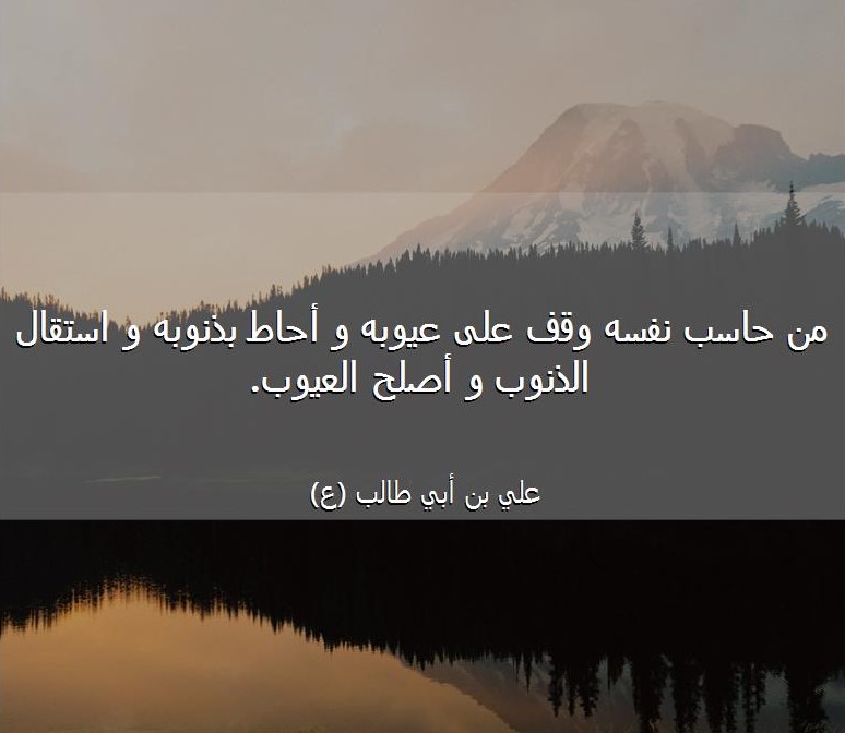 عن أمير المؤمنين عليه السلام : (مَن حاسَبَ نفسَه وقف على عيوبه وأحاط بذنوبه فاستقال الذنوب وأصلح العيوب) غرر الحكم ودرر الكلم للآمدي ص696.