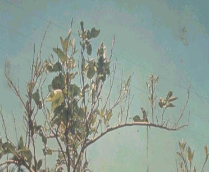 • جفاف، وموت الأغصان الطرفية back – die حيث تصبح عارية تماما من الأوراق. وينعكس كل ذلك على كمية الثمار المنتجة ونوعيتها.