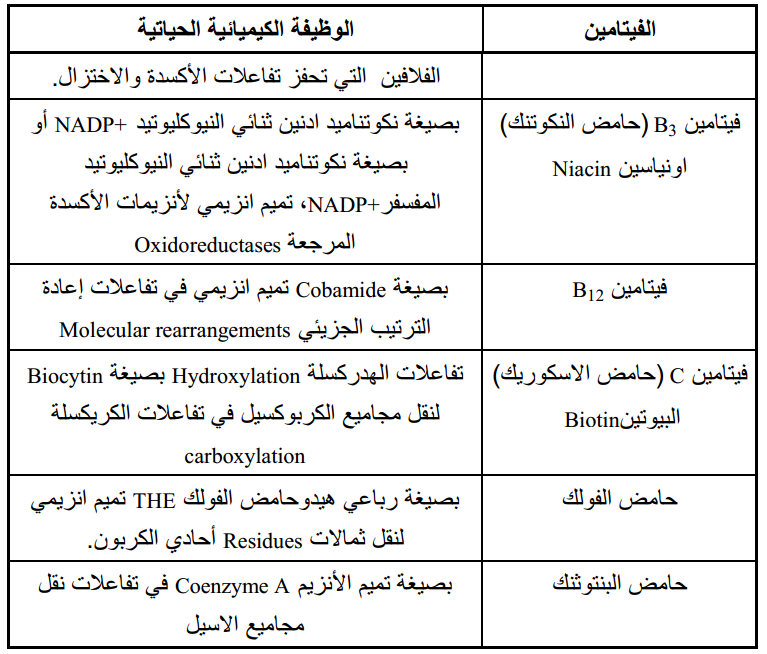 الفيتامينات والمرافقات الانزيمية