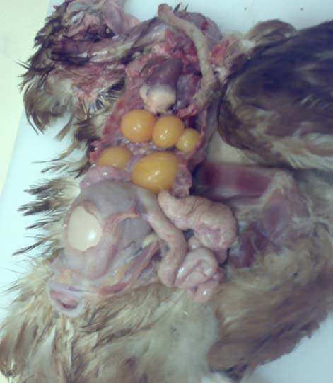 ويحتوى مبيض الدجاجة على العديد من البويضات الصغيرة وبويضة واحدة تامة التكوين وقد قربت من انفصالها عن المبيض ( شكل رقم 2).