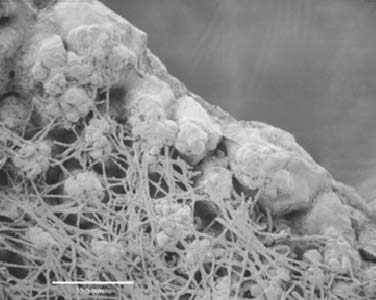 يتم ترسيب أملاح الكالسيوم ببطء في البداية حيث تظهر في صورة حبيبات دقيقة على أغلفة القشرة ثم تزداد هذه الحبيبات في الحجم وتختلط مع مواد بروتينية ثم تصبح بعد ذلك صلبة مكونة الطبقة المخروطية (الشكل السابق) وتأخذ شكل الحلمات التي تنغمس في أغلفة القشرة.