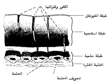 5- طبقة الكيوتكل : هي طبقة شفافة تغطى القشرة وتسمح بالتبادل الغازي .