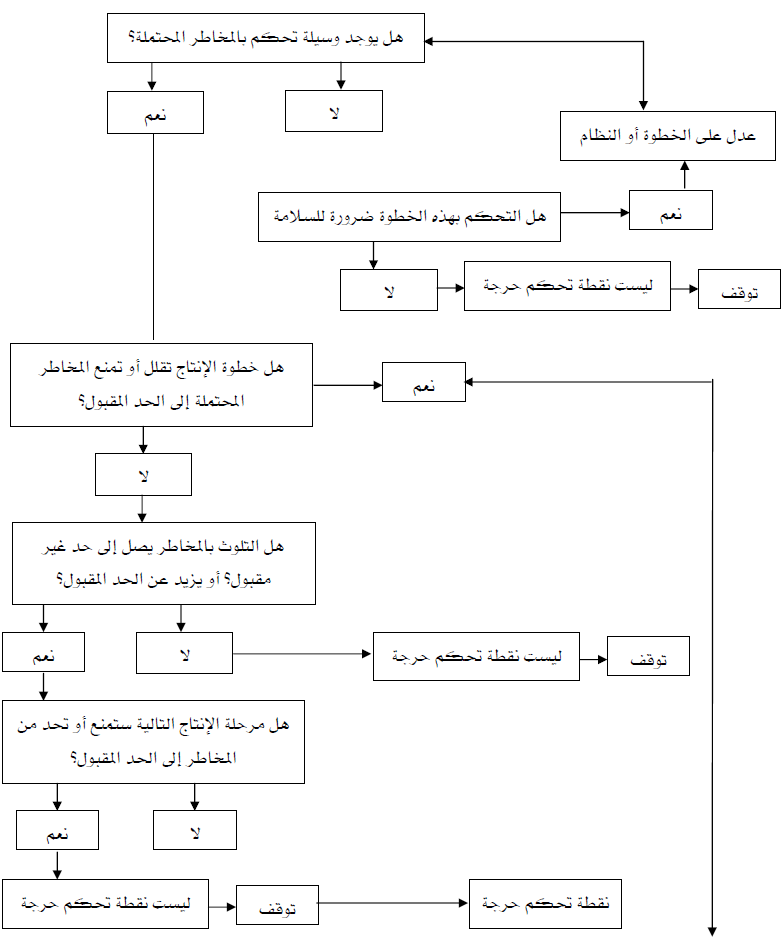 ويعتبر أسلوب شجرة اتخاذ القرار من أفضل الأساليب لتحديد نقاط التحكم الحرجة بصورة سهلة مبسطة لكل خطوة تم تحديدها كمصدر للخطر، ومن خلالها يمكن تقييم أي من نقاط التحكم الحرجة ويمكن عندها منع المخاطر أو إزالة الخطر أو خفضه إلى مستوى مقبول.
