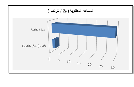 ثانيا – المقارنة من حيث استهلاك المساحة ضمن المنطقة الحضرية عن طريق حساب المساحة الطلوبة بالمتر المربع لكل راكب والسرعة بالكم / ساعة وذلك بين السيارة الخاصة والباص ، حيث وجد انه لسرعة 40 كم / ساعة يتطلب الراكب الواحد في الباص مساحة 1,5 متر بينما يتطلب مساحة 30 متر في حالة المركبة الخاصة .