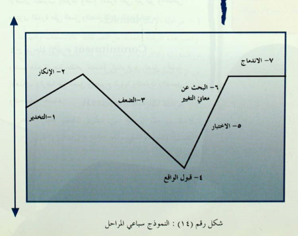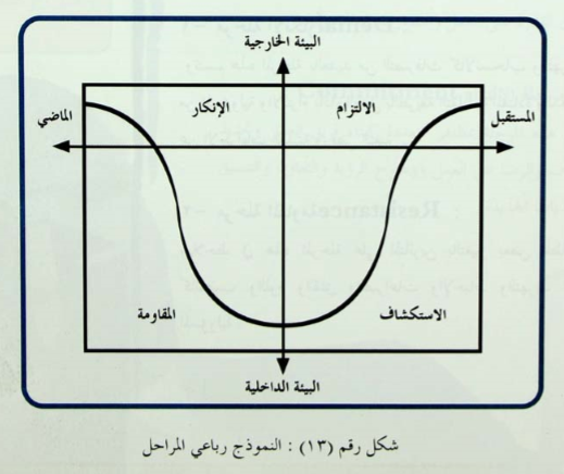 وفي هذا النموذج يتحرك الموظفون على المنحنى بداية من المربع الأيسر الى الأيمن العلوي حيث تمر عملية الانتقال بالمراحل الآتية :