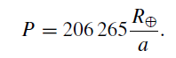 where P is the solar parallax (measured in seconds of arc) and R⊕ is the Earth’s radius. By equations (1) and (2), we have