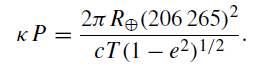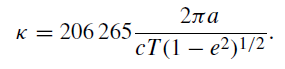 In fact, the Earth’s orbit has eccentricity e = 0·016 74 and the more correct expression for κ is