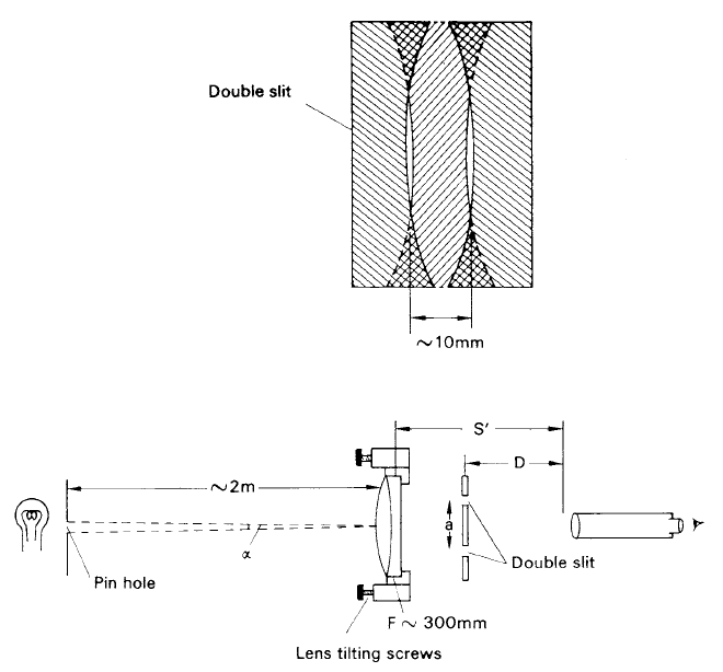 where F is the focal length of the objective. The effective slit separation may, therefore, be controlled by varying the distance, D.