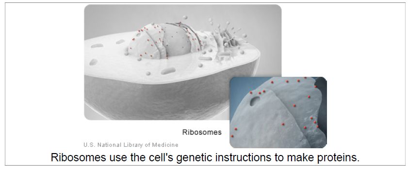 Ribosomes (image on page 9) are organelles that process the cell’s genetic instructions to create proteins. These organelles can float freely in the cytoplasm or be connected to the endoplasmic reticulum .
