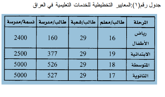 بعض المعايير (المؤشرات) التخطيطية في مجال الخدمات التعليمية: