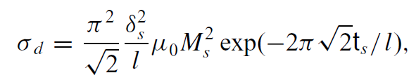 where ts is the thickness of the spacer layer, δs is the surface roughness of the spacer and l is the period of the roughness. Some typical values for a rough film are ts = 5 nm, δs = 1 nm l =20 nm, which gives σd = 0.03 mJ m−2 for a film with μ0Ms = 1 T. This is not insignificant compared with the exchange coupling.