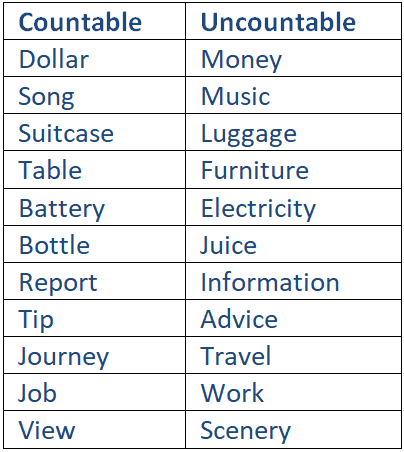 Countable and Uncountable Nouns