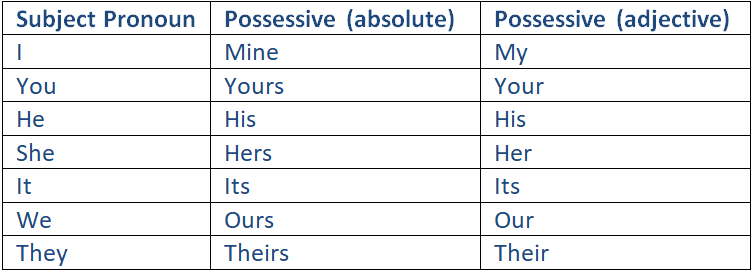 Possessive Pronoun