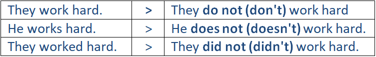 For all verbs except be and have, we use do/does + not or did + not to make negatives in the present simple and past simple:
