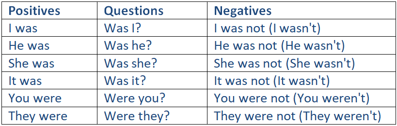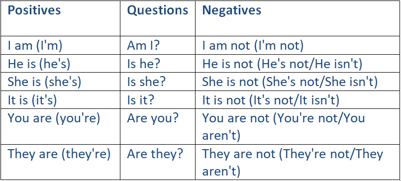 Here are the question forms and negative forms for be in the present simple and past simple: