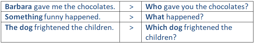 When we ask who, what and which about the subject of the verb, the question word takes the place of the subject: