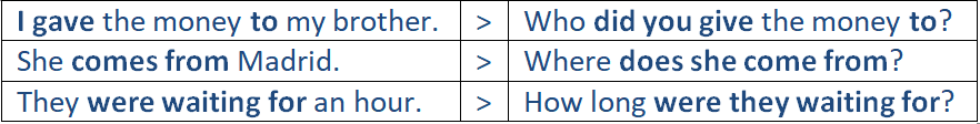 When we have a question with a verb and a preposition, the preposition usually comes at the end of the question:
