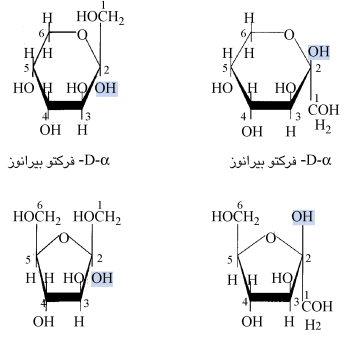 الشكل 15-4: أشكال البيرانوز والفورانوز للفركتوز.