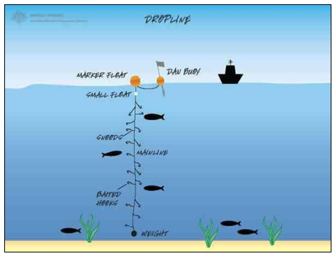 د- السنارة السائبة ذات الخيط الطويل: Drifting longlines