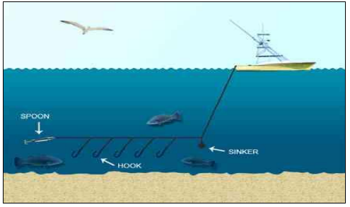 ج- السنارة الثابتة ذات الخيط الطويل: Set longlines