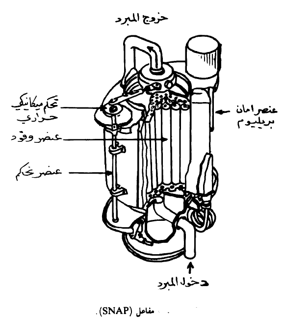 تستخدم هذه المفاعلات لتزويد سفن الفضاء بمصادر طويلة الأمد للطاقة. ولا بد من توفر تقنية متقدمة لذلك حيث يمكن أن يتم التشغيل لمدة سنة او تزيد دون مساعدة بشرية . كما ويجب أن نوجه اهتماماً خاصاً إلى النسبة بين الطاقة إلى الوزن. نبين في الشكل (2) مفاعل SNAP الذي يعتبر اسمه اختصاراً لاستخدامه وهو Systems for Nuclear Auxiliary Power ويتركب المفاعل من منظومة سداسية تتكون من 61 عنصراً اسطوانتين طول كل منها 25.4 سم وقطرها 2.54 سم أما المهدئ فهو عبارة عن مخلوط متجانس من هايدرايد الزركانيوم. والوقود عبارة عن يورانيوم ذو تخصيب مرتفع. ويحاط القلب بعاكس من البيريليوم. أما التحكم فيتم عن طريق نصفي اسطوانتين (Drums) من البيريليوم الذي يعتبر جزءاً من العاكس. اما المبرد فهو سبيكة الصوديوم -البوتاسيوم التي تعمل بالمضخة الكهرومغناطيسية. أما المبادل الحراري فيستخدم الزئبق المغلي. ويزن هذا المفاعل حوالي 100 كيلوجرام بدون الدرع الواقي (أو حوالي 300 كيلو جرام مع الدرع) أما الطاقة الناتجة فتبلغ حوالي 3 كيلووات