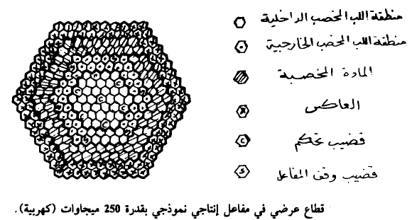 تستخدم هذه المفاعلات كما بينا للحصول على وقود نووي إضافي وذلك بتحويل اليورانيوم 238 والثوريوم - 232 إلى بلوتونيوم - 239 ويورانيوم - 233 على الترتيب. اللذين يمكن استخدامهما كوقود نووي انشطاري. وفي الواقع تعمل هذه المفاعلات على نيوترونات عالية الطاقة ومن ثم فهي مفاعلات نووية سريعة – يبين الشكل (3) قطاعا عرضيا في مفاعل إنتاجي نموذجي بطاقة تبلغ