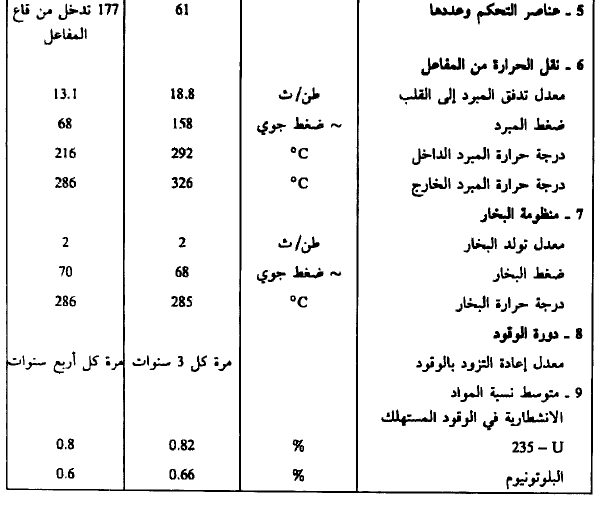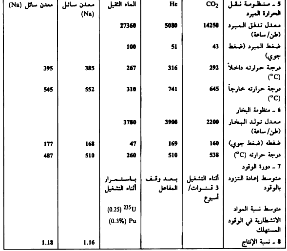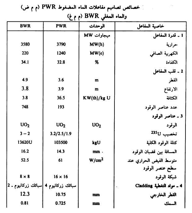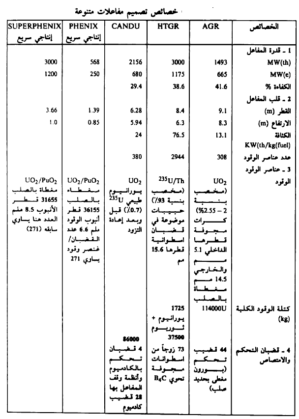 كما ونبين في الجدولين (1)، (1) خصائص تصاميم معظم المفاعلات المعروفة في العالم حتى يومنا هذا.