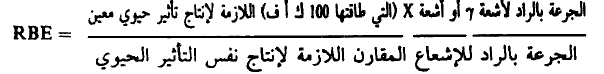حيث QF عامل الجودة (Quality Factor) ويرتبط بما يسمى بالتأثير الحيوي النسبي RBE) Relative Biological Effect) الذي يعرف كما يلي: